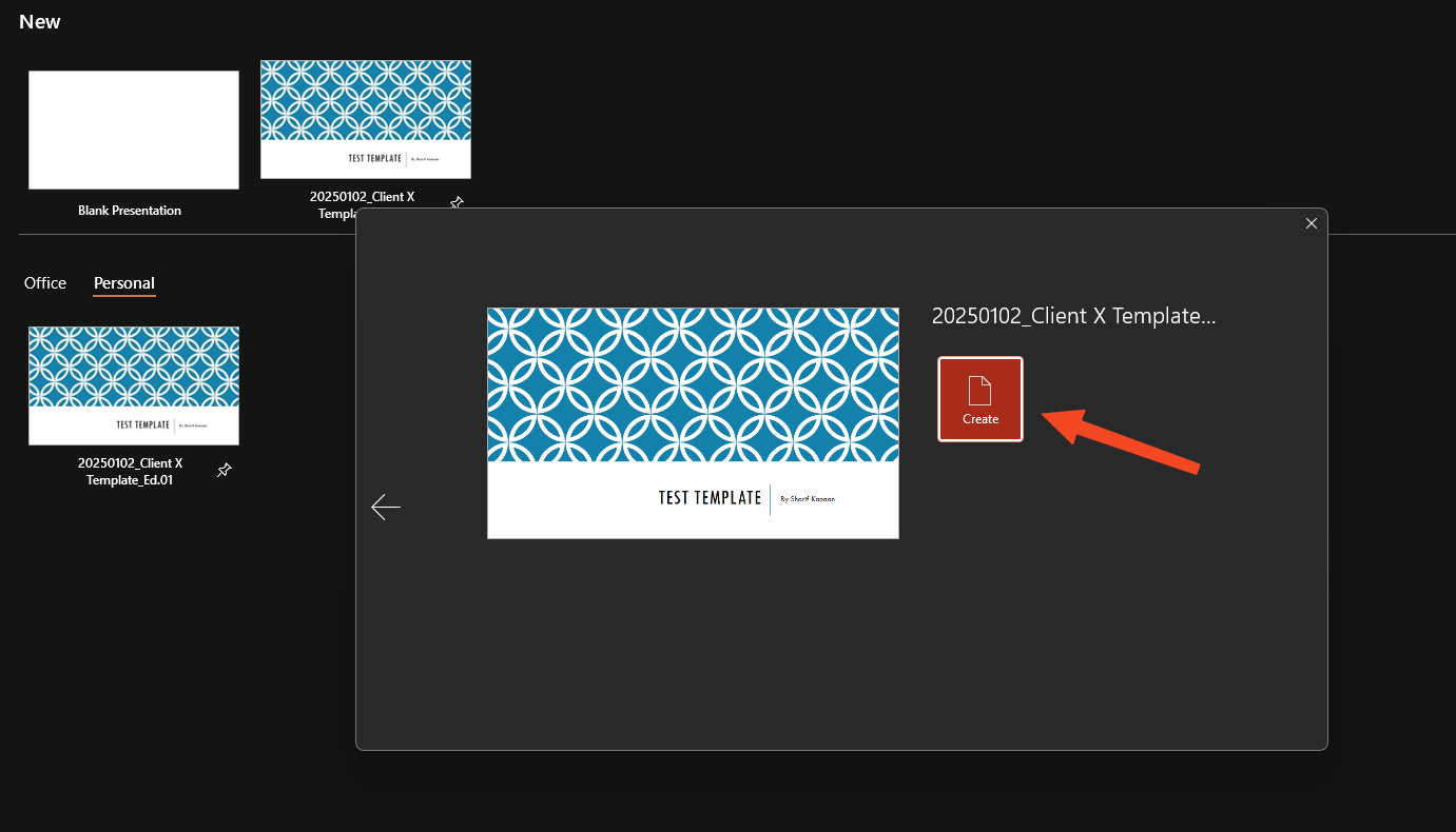 Now, every time a file needs to be created, click the newly created template within the window and select Create to generate the new file…